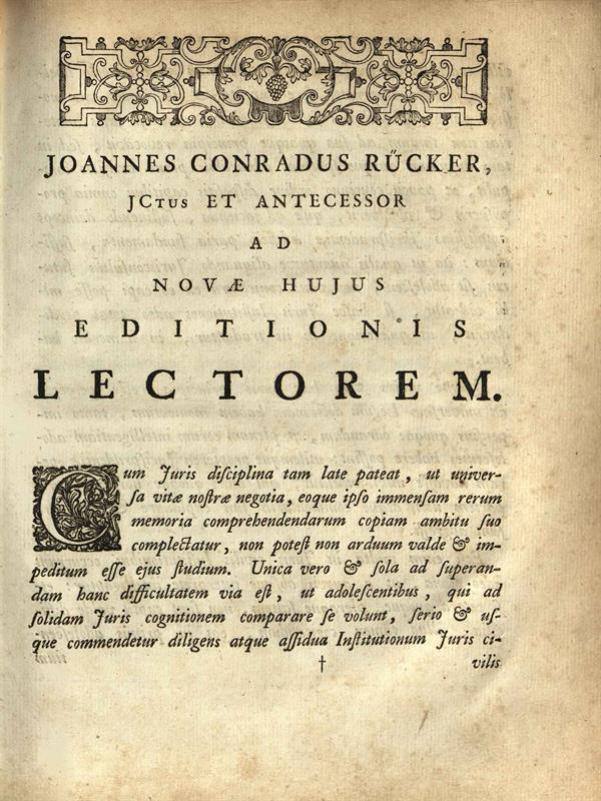 Ἰουστινιανός. Institutionum sive Elementorum per Tribunianum, Virum Magnificum..., Λέιντεν, Samuel Luchtmans, 1744.