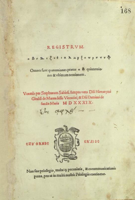 Ἱερὸν Εὐαγγέλιον..., Βενετία, Stephanus Sabiensis, 1539.