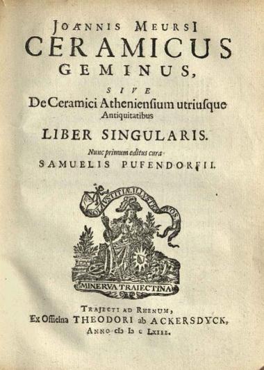 Ioannes Meursius. V. Cl. Ioannis Meursi Miscellanea Laconica... Curâ Samuelis Pufendorfii..., Ἄμστερνταμ, Judocus Pluymer, 1661.