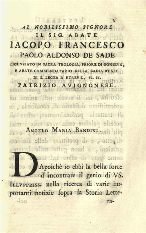 Θέογνις. Θεόγνιδος Μεγαρέως Γνῶμαι, Φωκυλίδου Ποίημα νουθετικόν, Πυθαγόρου Χρυσᾶ Ἔπη..., accedit italica versio metrica curante Ang. Mar. Bandinio I.V.D...., Φλωρεντία, Typis Mouckianis, Σεπτέμβριος 1766.