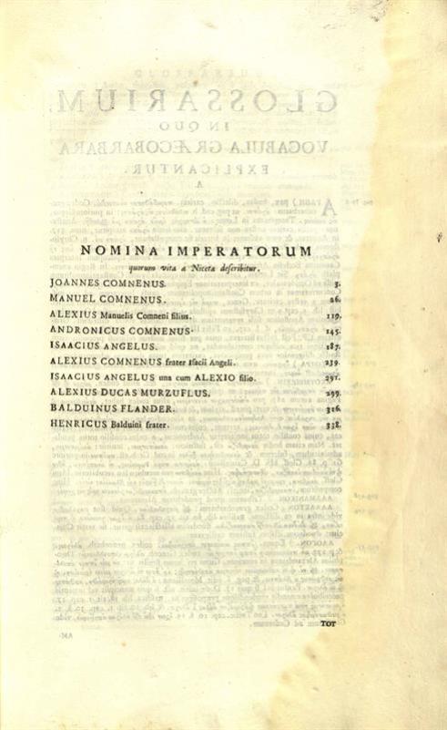 Νικήτας Χωνιάτης. Νικήτου Ἀκωμινάτου Χωνιάτου Ἱστορία..., Hieronymo Wolfio Oetingensi interprete... Cura & studio Caroli Annibalis Fabroti Jc, Βενετία, ex Typographia Bartholomaei Javarina, 1729.