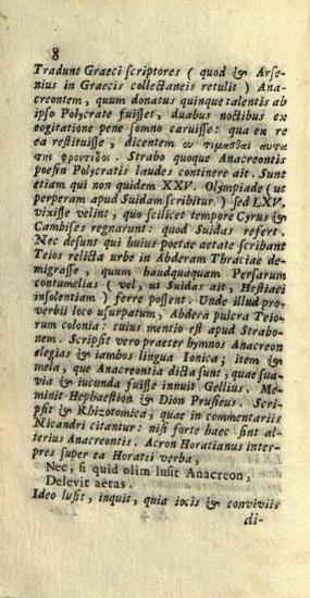 Ἀνακρέων. Ἀνακρέοντος Τηίου Μέλη..., partim Henr. Stephani, partim Eliae Andreae, Latina... interpretatione. Io Lamius recensuit..., Φλωρεντία, ex Typographio Io. Baptistae Bruscagli & Sociorum, 1742.