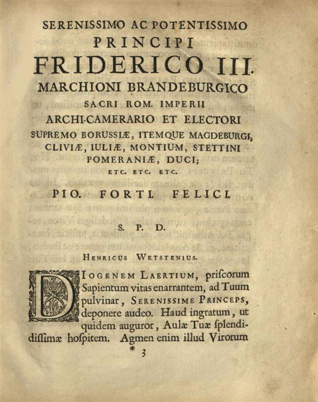 Διογένης Λαέρτιος. De Vitis, Dogmatibus et Apophtegmatibus Clarorum Philosophorum, Ἄμστερνταμ, Henricus Wetsteninus, 1698.
