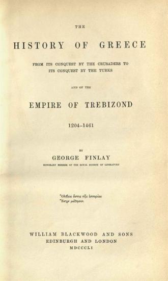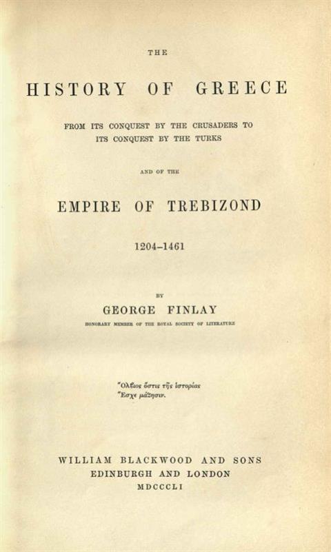 George Finlay, The History of Greece: From the Conquest by the Crusaders to its Conquest by the Turks and of the Empire of Trebizond 1204-1461, William Blackwood and Sons, Edinburgh-London 1851.