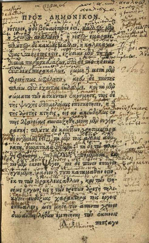 Πλούταρχος - Ἰσοκράτης. Plutarchi Chaeronei Opusculum de liberorum institutione... Isocratis Orationes Tres: I. Ad Demonicum. II. Ad Nicoclem. III. Nicolis..., Wittenberg, Zacharias Lehmann, 1593.