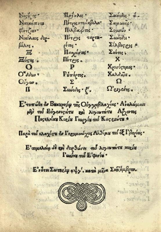 Σεβαστὸς Κυμινήτης. Δογματικὴ Διδασκαλία τῆς ἁγιωτάτης ἀνατολικῆς καὶ καθολικῆς Ἐκκλησίας..., Βουκουρέστι, Ἄνθιμος Ἱερομόναχος ἐξ Ἰβηρίας, Σεπτέμβριος 1703.