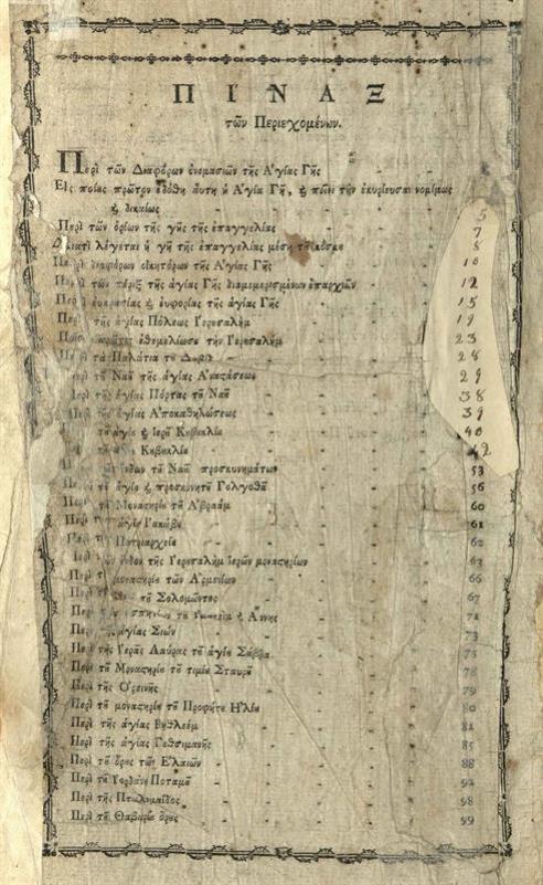 Χρύσανθος ἐκ Προύσης. Προσκυνητάριον τῆς ἁγίας πόλεως Ἱερουσαλὴμ καὶ πάσης Παλαιστίνης..., Βιέννη, Ἰωσὴφ Βαουμάιστερ, 1787.