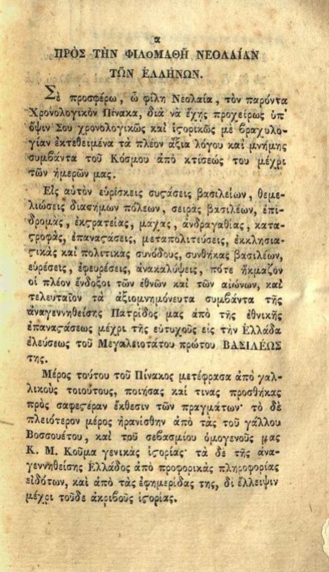Σολομῶν Νικολαΐδης Κύπριος. Χρονολογικὸς Πίναξ. Περιέχων ἐν βραχυλογίᾳ τὰ πλέον ἄξια λόγου καὶ μνήμης συμβάντα τοῦ Κόσμου.., Αἴγινα, Βασιλικὴ Τυπογραφία, διευθυνομένη ὑπὸ Π. Πατρικίου, 1833.