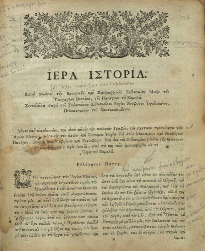Νεόφυτος Καυσοκαλυβίτης. Ἡ Θεία καὶ Ἱερὰ Ἀκολουθία... Βαρνάβα καὶ Σωφρονίου..., Λειψία, Βιλγέλμος Γόττλοπ Σόμμερς, 1775.