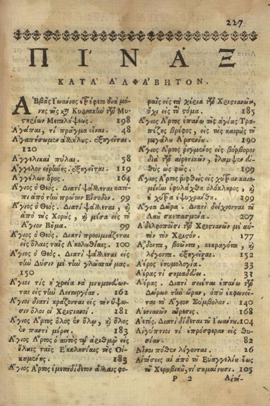Νικόλαος Βούλγαρης. Ἱερὰ Κατήχησις ἤτοι Ἐξήγησις τῆς Θείας... Λειτουργίας, Βενετία, Ἀντώνιος Βόρτολις, 1750.