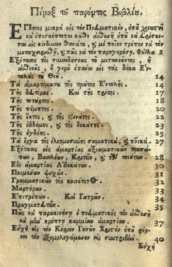 [Μεθόδιος Ἀνθρακίτης]. Ἐπίσκεψις πνευματικοῦ πρὸς ἀσθενῆ. Ἤτοι Ἐξομολογητάριον..., Βενετία, Ἀντώνιος Βόρτολις, 1781.
