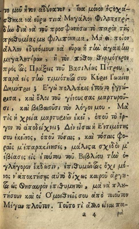 [Ἀθανάσιος Σκιαδᾶς]. Γένος, Ἦθος Κίνδυνοι καὶ Κατορθώματα Πέτρου τοῦ Πρώτου... Αὐτοκράτορος... ῾Ρωσίας..., Βενετία, Ἀντώνιος Βόρτολις, 1737.