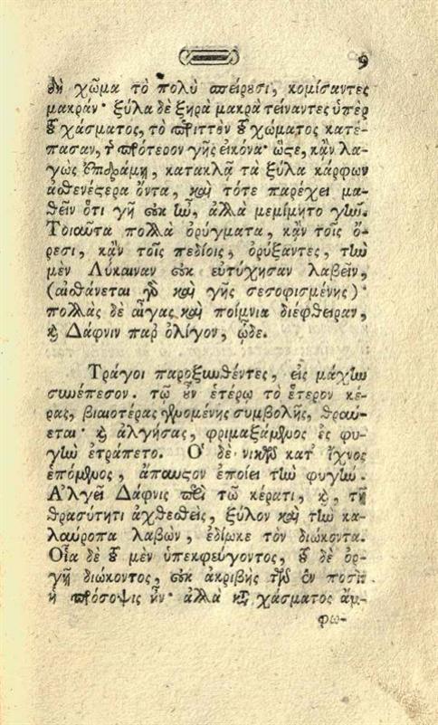 Λόγγος. Λόγγου Ποιμενικὰ τὰ κατὰ Δάφνιν καὶ Χλόην..., Βιέννη, Γεώργιος Βεντότης, 1792.