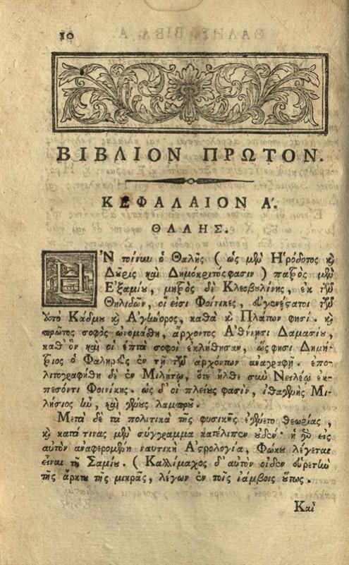 Διογένης Λαέρτιος. Διογένους Λαερτίου περὶ Βίων, Δογμάτων, καὶ Ἀποφθεγμάτων τῶν ἐν Φιλοσοφίᾳ εὐδοκιμησάντων Βιβλία Δέκα... διορθωθέντα παρὰ Σπυρίδωνος Βλαντῆ..., Βενετία, Νικόλαος Γλυκύς, 1798.