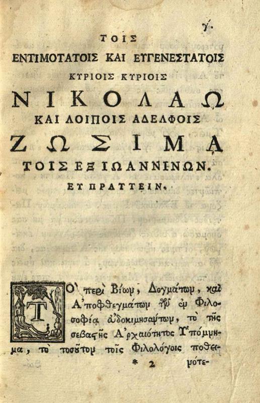 Διογένης Λαέρτιος. Διογένους Λαερτίου περὶ Βίων, Δογμάτων, καὶ Ἀποφθεγμάτων τῶν ἐν Φιλοσοφίᾳ εὐδοκιμησάντων Βιβλία Δέκα... διορθωθέντα παρὰ Σπυρίδωνος Βλαντῆ..., Βενετία, Νικόλαος Γλυκύς, 1798.