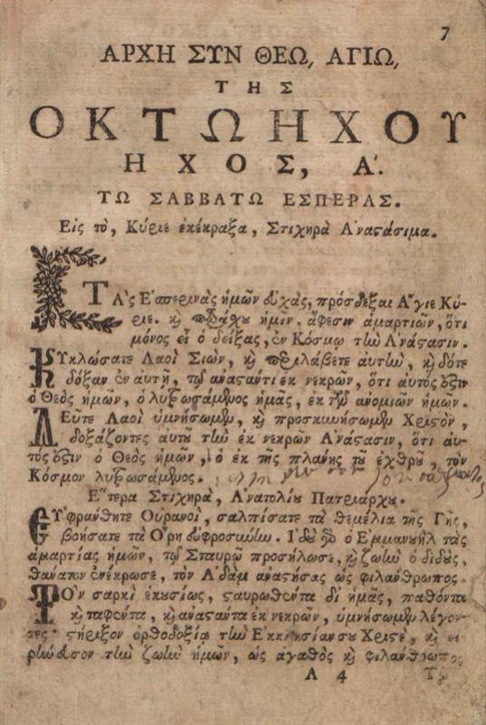 Ἰωάννης Δαμασκηνός. Ὀκτώηχος..., Βενετία, Νικόλαος Γλυκύς, 1820.