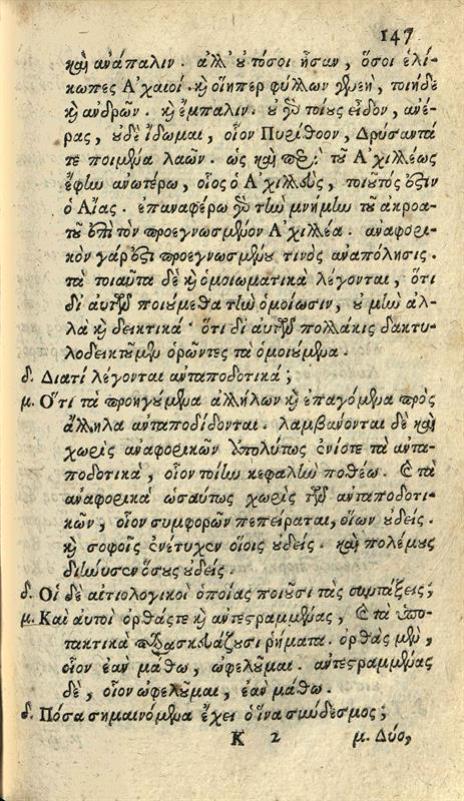 Βησσαρίων Μακρῆς. Σταχυολογία Τεχνολογικὴ κατ᾽ ἐρωταπόκρισιν τῆς Γραμματικῆς Τέχνης ἐκδοθεῖσα παρὰ Βησσαρίωνος ἱερομονάχου... καὶ τό, περὶ ὁμοίων καὶ διαφόρων Λέξεων τοῦ Ἀμμωνίου... διορθωθέντα, παρὰ... Ἀλεξάνδρου Καγκελλαρίου..., Βενετία, Νικόλαος Γλυκύς, 1747.