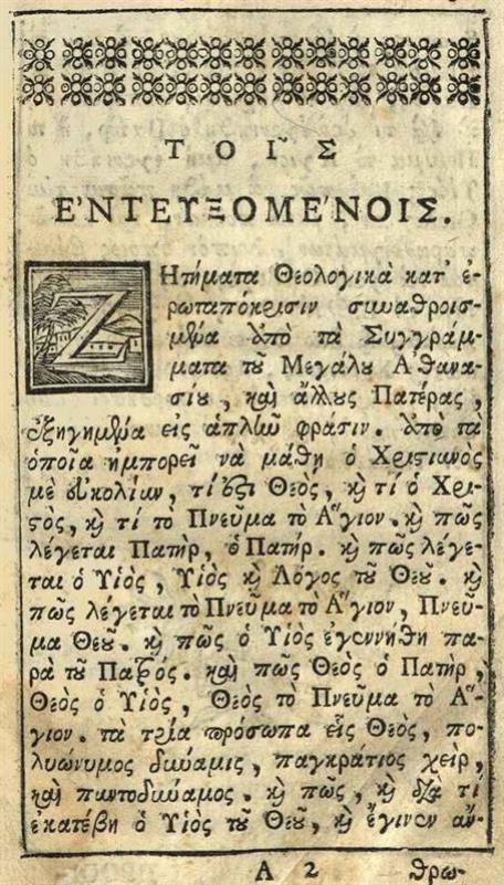 [Νεκτάριος Τέρπος]. Ζητήματα διάφορα θεολογικὰ κατ᾽ ἐρωταπόκρισιν..., Βενετία, Νικόλαος Γλυκύς, 1779.