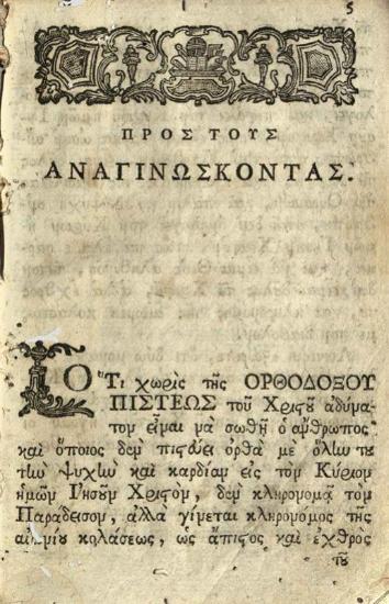 Νεκτάριος Τέρπος. Βιβλίον καλούμενον Πίστις... Con regia approvazione, Βενετία, Νικόλαος Γλυκύς, 1779 [= 1799].