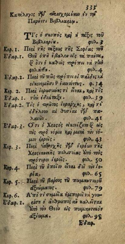 [Μεθόδιος Ἀνθρακίτης]. Βοσκὸς λογικῶν προβάτων, ἤτοι, περὶ τοῦ Καθήκοντος τῷ Πνευματικῷ Ποιμένι, καὶ πῶς δεῖ Ποιμαίνειν τὸ ἐμπιστευθὲν αὐτῷ λογικὸν Ποίμνιον..., Βενετία, Νικόλαος Γλυκύς, 1708.