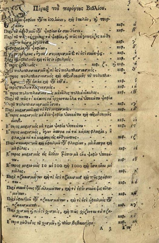 [Ἐμμανουὴλ Γλυζώνιος]. Βιβλίον πρόχειρον τοῖς πᾶσι περιέχον τήν τε Πρακτικὴν Ἀριθμητικήν..., Βενετία, Νικόλαος Γλυκύς, 1679.