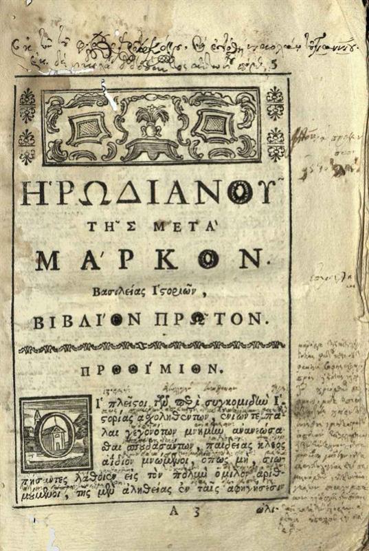Ἡρωδιανός. Ἡρωδιανοῦ τῆς μετὰ Μᾶρκον βασιλείας Ἱστοριῶν βιβλία ὀκτὼ..., Βενετία, Νικόλαος Γλυκύς, 1780.