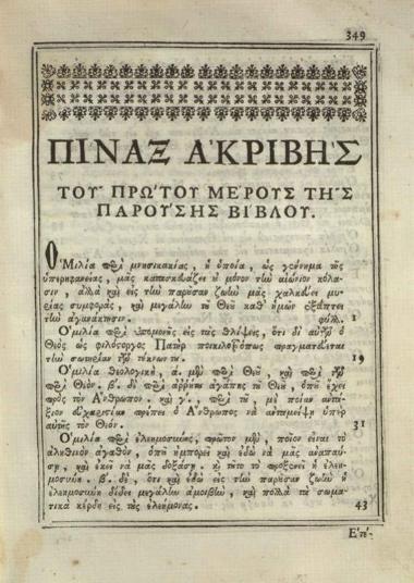 Ἰωάννης ἐκ Λίνδου. Ἱερὰ Βίβλος καλουμένη Ἀποστολικὴ Σαγήνη ἧς τὰ μέρη δύω..., Βενετία, Νικόλαος Γλυκύς, 1785.