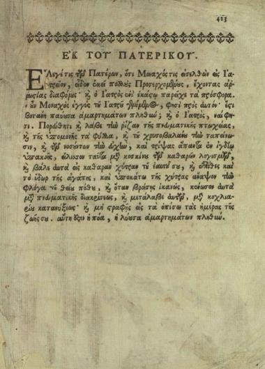 [Ἰωάννης τῆς Κλίμακος]. Νέα Κλίμαξ μεταφρασθεῖσα... ὑπὸ... Ἰερεμίου ἀρχιμανδρίτου Σιναΐτου..., Βενετία, Νικόλαος Γλυκύς, 1774.