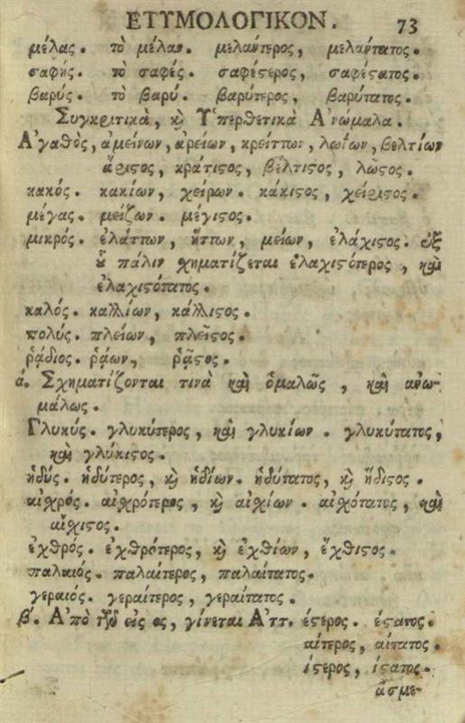 Ἀντώνιος Κατήφορος. Γραμματικὴ ἑλληνικὴ ἀκριβεστάτη... διορθωθεῖσα παρὰ Σ.[πυρίδωνος] Β.[λαντῆ]..., Βενετία, Νικόλαος Γλυκύς, 1795.