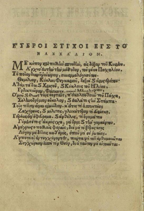 Ματθαῖος Τζιγάλας (Κιγάλας). Πασχάλιον αἰώνιον μετὰ καινῆς καὶ συνοπτικῆς μεθόδου..., Βενετία, Νικόλαος Γλυκύς, 1679.