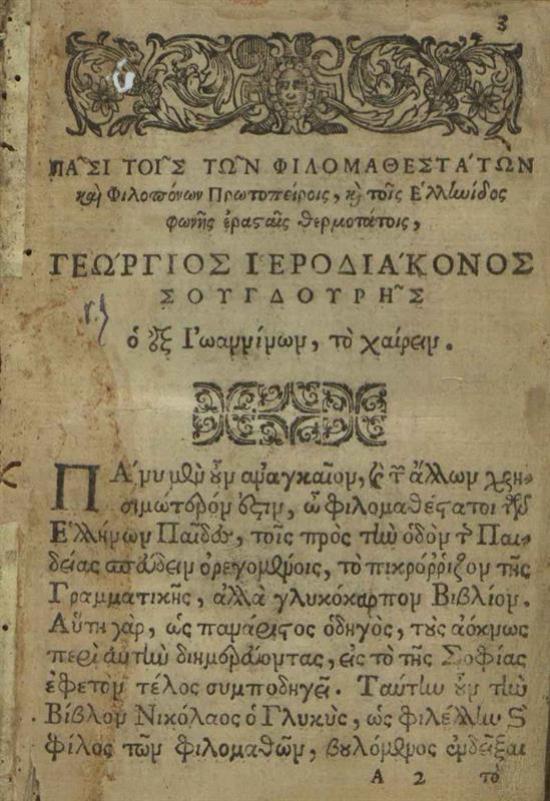 Κωνσταντῖνος Λάσκαρης. Γραμματικὴ..., Βενετία, Νικόλαος Γλυκύς, 1673.