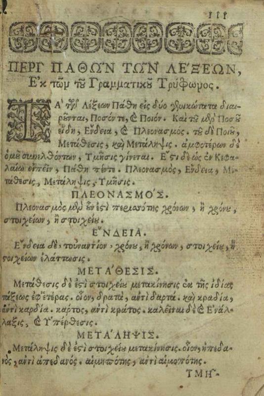 Κωνσταντῖνος Λάσκαρης. Γραμματικὴ..., Βενετία, Νικόλαος Γλυκύς, 1673.