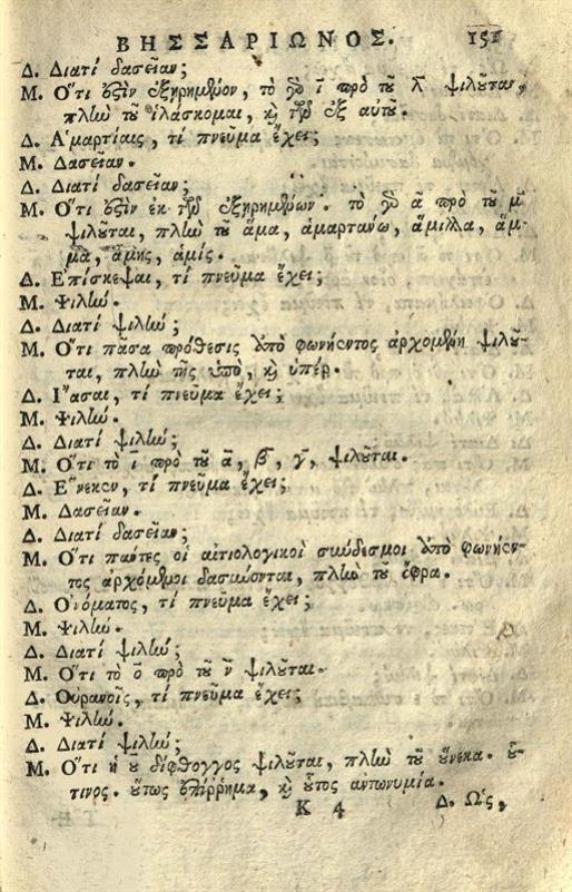 Βησσαρίων Μακρῆς. Σταχυολογία Τεχνολογικὴ κατ᾽ ἐρωταπόκρισιν τῆς Γραμματικῆς Τέχνης... καὶ τό, περὶ ὁμοίων καὶ διαφόρων Λέξεων τοῦ Ἀμμω-νίου..., Βενετία, Νικόλαος Γλυκύς, 1799.