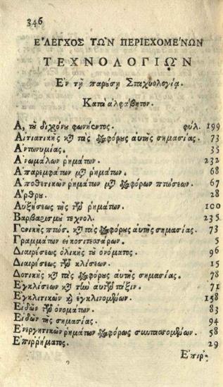 Βησσαρίων Μακρῆς. Σταχυολογία Τεχνολογικὴ..., διορθωθέντα, παρὰ... Σπυρίδωνος Μήλια..., Βενετία, Νικόλαος Γλυκύς, 1768.