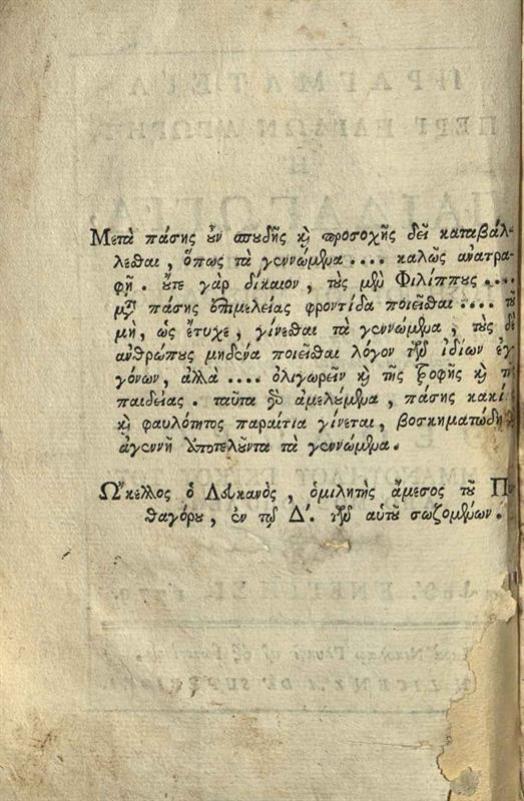 Ἰώσηπος Μοισιόδαξ. Πραγματεία περὶ παίδων ἀγωγὴ ἢ Παιδαγωγία..., Βενετία, Νικόλαος Γλυκύς, 1779.