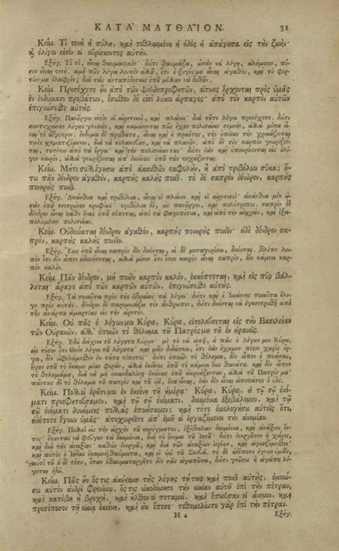 Θεοφύλακτος Βουλγαρίας. Θεοφυλάκτου Ἀρχιεπισκόπου Βουλγαρίας Ἑρμηνεία εἰς τὰ τέσσερα Εὐαγγέλια. Μεταγλωττισθεῖσα... παρά τινος Σοφοῦ... Ἀνωνύμου..., Λειψία, Ἰωάννης Γόττλοπ, Ἐμμανουὴλ Βρέιτκοπφ, 1761.