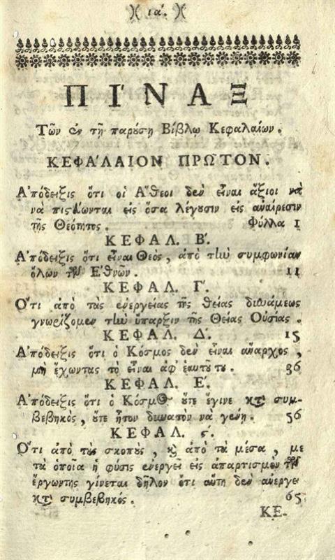 Προκόπιος Πελοποννήσιος. Βιβλίον καλούμενον Ἔλεγχος κατὰ ἀθέων καὶ δυσσεβῶν, περιέχον λόγους κεφαλαιώδεις..., Βενετία, Δημήτριος Θεοδοσίου, τ. Α´-Β´, 1792.