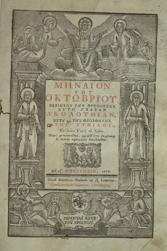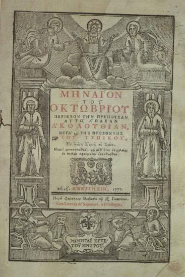Μηναῖον τοῦ Ὀκτωβρίου..., Βενετία, Δημήτριος Θεοδοσίου, 1777.