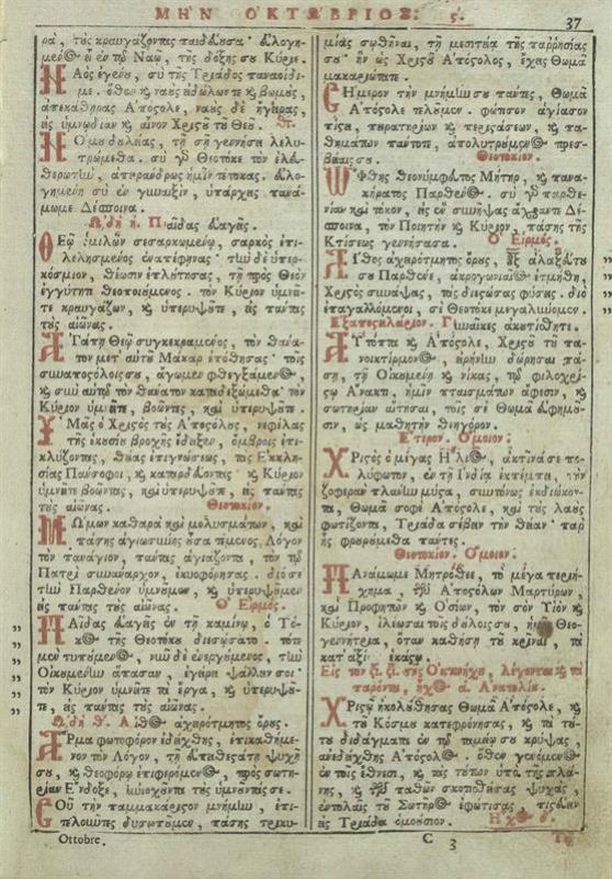 Μηναῖον τοῦ Ὀκτωβρίου..., Βενετία, Δημήτριος Θεοδοσίου, 1777.