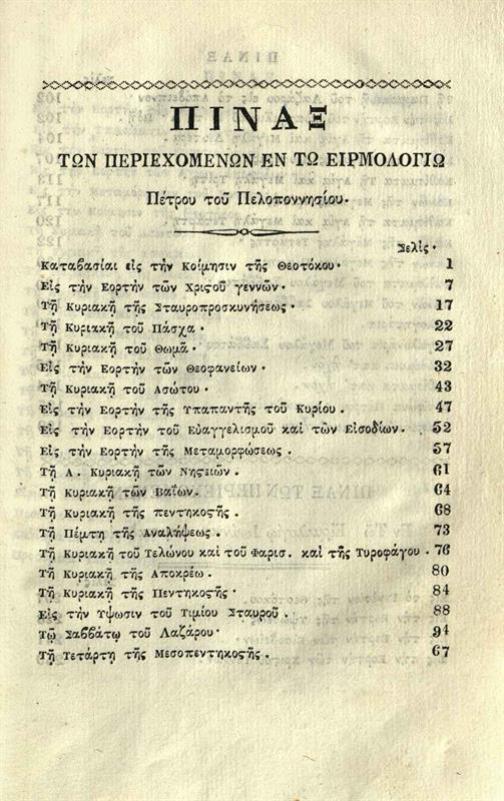 Πέτρος ὁ Πελοποννήσιος, Εἱρμολόγιον τῶν καταβασιῶν --- μετὰ τῶν Κανόνων τοῦ ὅλου ἐνιαυτοῦ καὶ συντόμου Εἱρμολογίου --- ἐπιθεωρηθέντα --- παρὰ Ἰωάννου Λαμαπδαρίου Νῦν δεύτερον ἐκδοθὲν ---, Κωνσταντινούπολη, Ἐκ τῆς τοῦ Παναγίου Τάφου Τυπογραφίας, 1839.