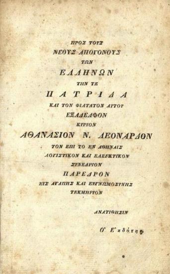 Ἰωάννης Ἀναστασίου Λεονάρδος. Νεωτάτη τῆς Θεσσαλίας Χωρογραφία συνταχθεῖσα κατ’ ἰδιαιτέραν τινα μέθοδον γεωγραφικῶς καὶ περιηγητικῶς..., Πέστη, Ἑλληνικὸ Τυπογραφεῖο τοῦ Εὐγενοῦς Τράττνερ καὶ Καρολίου, 1836.