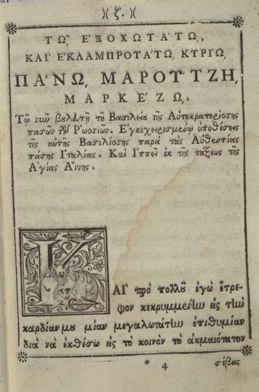 [G. della Casa]. Χρηστοήθεια... Μεταφρασθεῖσα, καὶ στιχουργηθεῖσα παρὰ Κωνσταντίνου Δαπόντε..., Βενετία, Δημήτριος Θεοδοσίου, 1770.