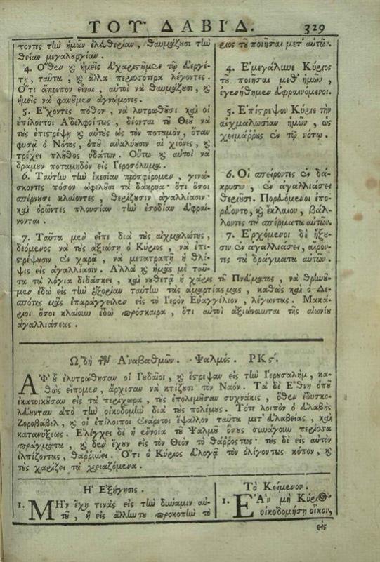 Θεοδώρητος, Ἐπίσκοπος Κύρου. Τὸ Ψυχοσωτήριον Ψαλτήριον Δαβὶδ... ἐξηγηθὲν... καὶ μεταγλωττισθὲν... παρὰ Ἀγαπίου [Λάνδου]... εἰς τὴν κοινὴν ἡμετέραν Διάλεκτον..., Βενετία, Δημήτριος Θεοδοσίου, 1770.