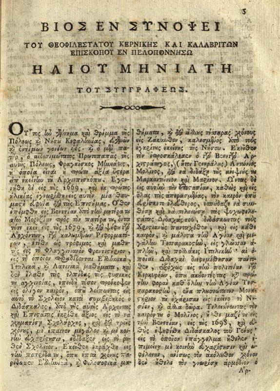 Ἠλίας Μηνιάτης. Διδαχαὶ.... μετὰ καί τινων πανηγυρικῶν Λόγων... διορθωθεῖσαι. Παρὰ Ν.Γ.Ι., Βενετία, Πάνος Θεοδοσίου, 1805.
