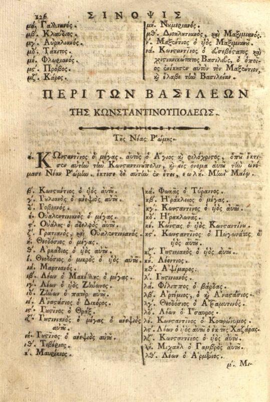 Δωρόθεος Μονεμβασίας. Βιβλίον ἱστορικὸν περιέχον ἐν συνόψει διαφόρους καὶ ἐξόχους ἱστορίας..., Βενετία, Πάνος Θεοδοσίου, 1805.