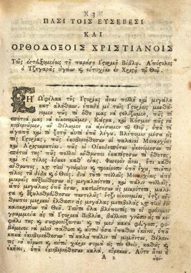 Δωρόθεος Μονεμβασίας. Βιβλίον ἱστορικὸν περιέχον ἐν συνόψει διαφόρους καὶ ἐξόχους ἱστορίας..., Βενετία, Πάνος Θεοδοσίου, 1805.