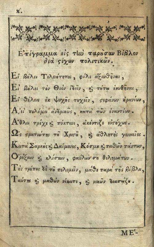Νικόδημος Ἁγιορείτης. Βιβλίον ψυχωφελέστατον καλούμενον Ἀόρατος Πόλεμος..., Βενετία, Πάνος Θεοδοσίου, 1796.