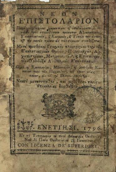 Νέον Ἐπιστολάριον..., Βενετία, Πάνος Θεοδοσίου, 1796.