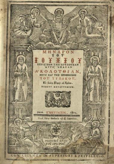 Μηναῖον τοῦ Ἰουνίου..., Βενετία, Πάνος Θεοδοσίου, 1801.