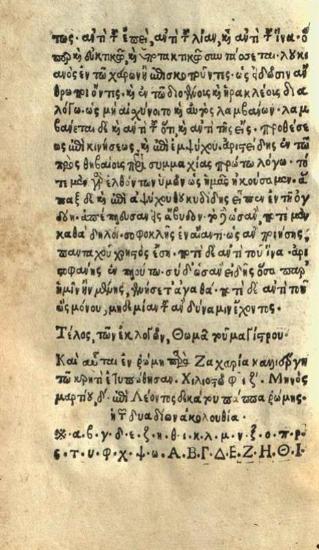Θωμᾶς Μάγιστρος. Θωμᾶ τοῦ Μαγίστρου κατὰ ἀλφάβητον, ἀτθίδος διαλέκτου ἐκλογαί..., Ρώμη, Ζαχαρίας Καλλιέργης, 4 Μαρτίου 1517.